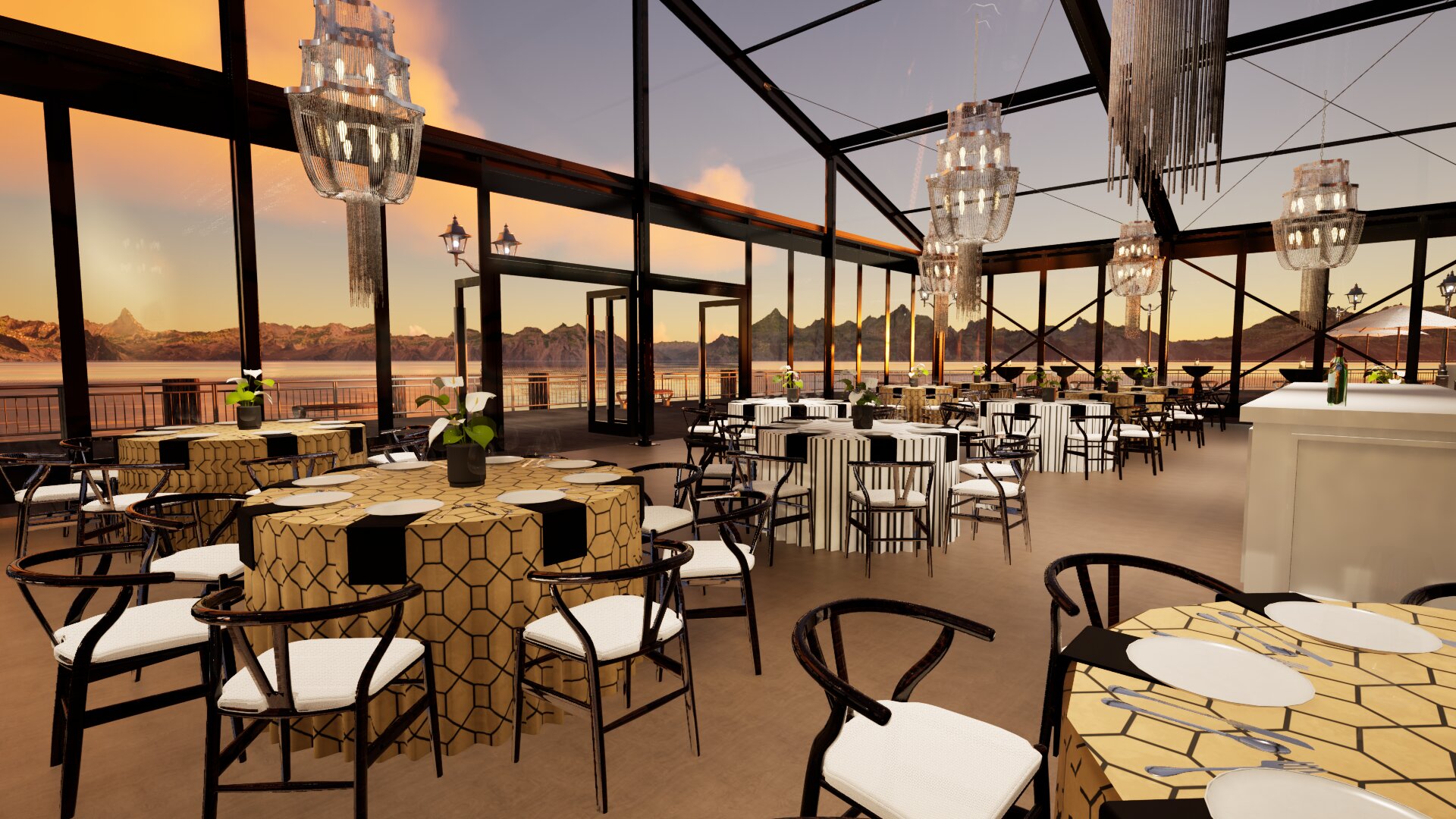 Entrance Doors: 9' black frame double glass with 5' pulls, 7' standard black frame double glass, slider wall